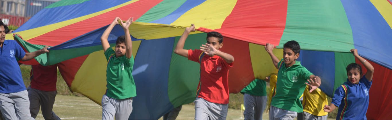 The indoor play area is equipped with different swings, slides, tents and other fun games for small children when they cannot go out in the field during rain, extreme heat or cold. Students can carry on different gross motor activities under the guidance of their sports teachers and instructors.